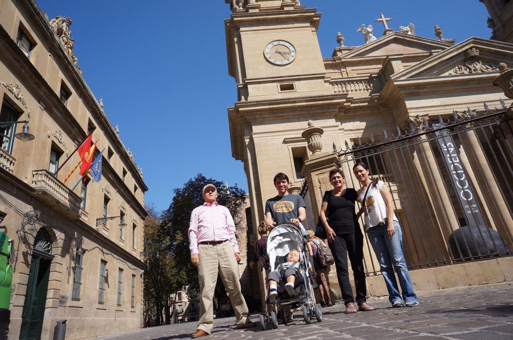 En el registro gráfico Angela María Vanegas Correa, Felipe Pizarro Correal, Beatriz Jaramillo Vélez y Alfredo Vanegas Montoya. Catedral Metropolitana de Santa María La Real, Pamplona, España. Culto Católico. De estilo gótico francés, la construcción fue iniciada en 1394 sobre las bases de un templo existente desde 589. Diversas Capillas integran el conjunto: de San Juan Bautista; de Santa Cristina; de San José y Santo Tomás; de San Andrés; del Santísimo; de San Juan Evangelista y la de Sandoval, que sale al exterior y contiene la tumba del Benedictino Fray Prudencio de Sandoval. Un retablo de Juan de Rizzi, con un lienzo de San Benito Abad, cuya advocación desde 1651 fue adscrita a dicha capilla, se encuentra en el lugar. Esta Catedral es una de las grandes obras significativas del gótico europeo y el neoclasicismo hispano. Es la sede de la Arquidiócesis de Pamplona y Tudela.