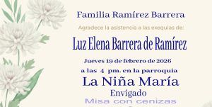 Falleció en Envigado el 18 de febrero de 2026. Solemnes exequias en la Parroquia de la Niña María, Envigado, el 19 de febrero de 2026 a las 4:00 de la tarde.