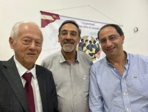 Desde la izquierda, Alfredo Vanegas, Presidente del Centro de Historia de Envigado, Gabriel Ignacio Rodríguez, Sacerdote Jesuita Director de Fe y Culturas, y José Manuel Restrepo, Rector de la Universidad EIA.