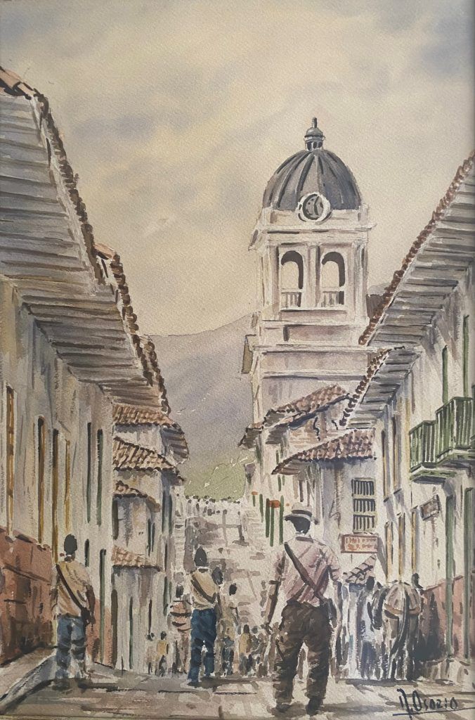 *Acuarela del pintor antioqueño A. Osorio. Original en la Colección de Alfredo Vanegas Montoya.
