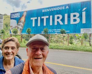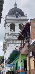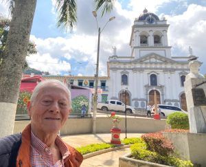 Alfredo Vanegas Montoya frente al Templo de Nuestra Señora de los Dolores, Parque Principal de Titiribí, Antioquia, Colombia.