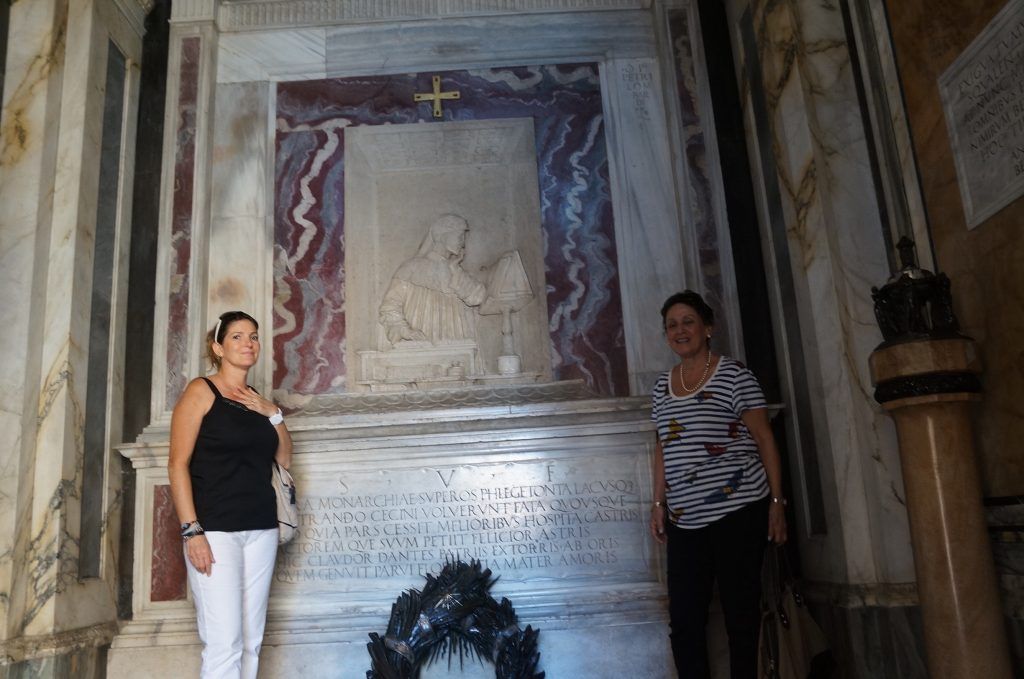 En el registro gráfico Claudia Montoya Montoya y Beatriz Jaramillo Vélez. Tumba de Dante Alighieri, Rávena, Italia. Traducción del latín del epitafio: “Los derechos de la monarquía, los cielos y las aguas de Flegetonte visitando canté, hasta que quiso mi destino mortal. Sin embargo, como mi alma fue huésped en lugares mejores y más beata alcanzó entre las estrellas a su Creador, aquí estoy encerrado yo, Dante, exiliado de la patria tierra, generado por Florencia, madre de poco amor”. En Florencia, donde el poeta nació, un sepulcro vacío espera los despojos mortales que en Rávena yacen.